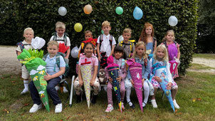 Am vergangenen Samstag wurden die neuen Erstklässler feierlich eingeschult. Nach dem Einschulungsgottesdienst in der Kirche ging es mit der Klassenlehrerin Frau Bauken für die allererste Unterrichtsstunde in die Schule.